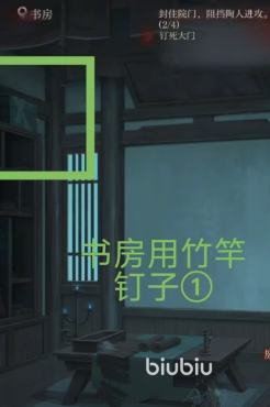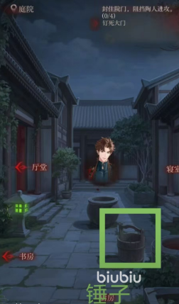 我们将刚刚获取到的锤子拖动到寝室门口,砸门进入。再次点击木桶获取锤子后,我们拿着已经获取到的东西进入主厅,按照从左到右,再敲击中间的顺序敲击编钟就可以解开谜题了。完成了这一步后,我们就需要搜集钉子来钉死大门了。在孙宅试胆大赛中,第一个钉子的位置就在我们的庭院里。我们在庭院的水桶中拿起锤子,在右下角的花坛边就可以捡到我们的第一个钉子了。进入厨房之后,咱们可以在厨房的柴堆里面找到木材,此时我们用竹竿挑出箱子,就可以获取第二个钉子了。