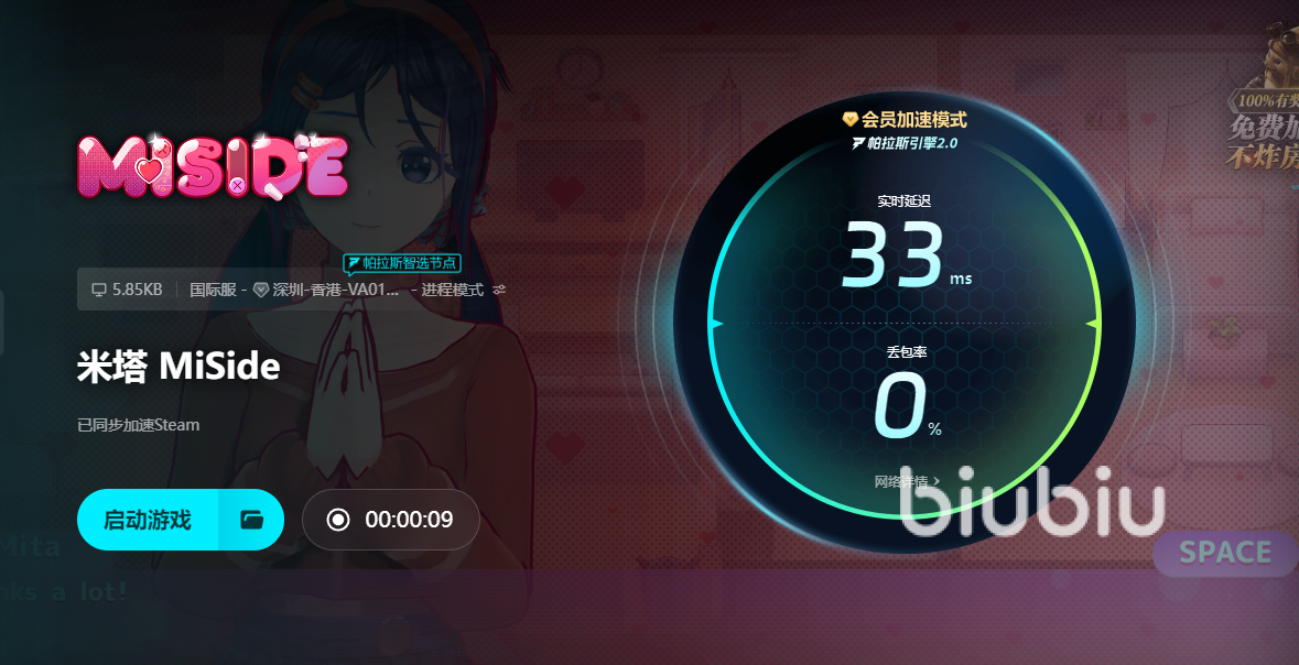 游戏拥有无比可爱又精致的二次元画面,内存较小,但由于服务器并没有在国内,无法与服务器正常的连接,闪退卡顿严重等情况也会时而发生。Biubiu加速器专门解决服务器无法连接严重、卡顿、掉帧等情况。可同步在线加速steam平台,当前多地区覆盖支持全球200多个地区游戏加速,毫秒级解决拥堵路段,智能切换最优专线。