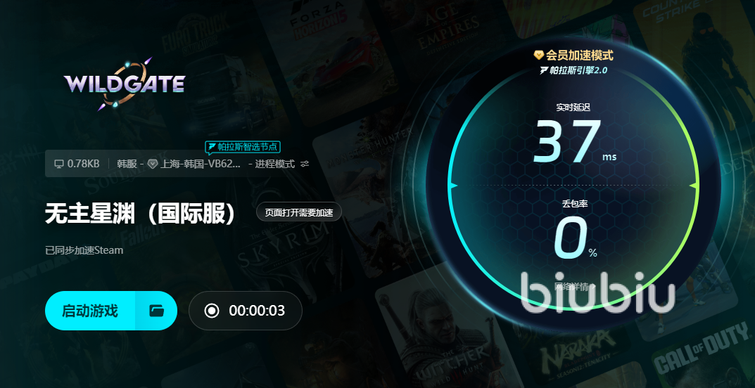 造成《无主星渊》掉帧和掉线的原因是多方面的,除了玩家本地的硬件配置要能支撑游戏高负载渲染之外,稳定、低延迟的网络环境同样至关重要。很多玩家在使用普通家庭网络时,容易因为带宽不稳定、路由器拥塞、或者与游戏服务器的中转节点连接不畅等问题,导致实际数据传输存在严重瓶颈。这时候,采用专业的游戏加速器就显得尤为重要。biubiu加速器作为热门的游戏加速服务之一,通过动态切换节点以及区域精准匹配,为《无主星渊》这样的高强度联网游戏提供了更稳定、更高速的连接环境。