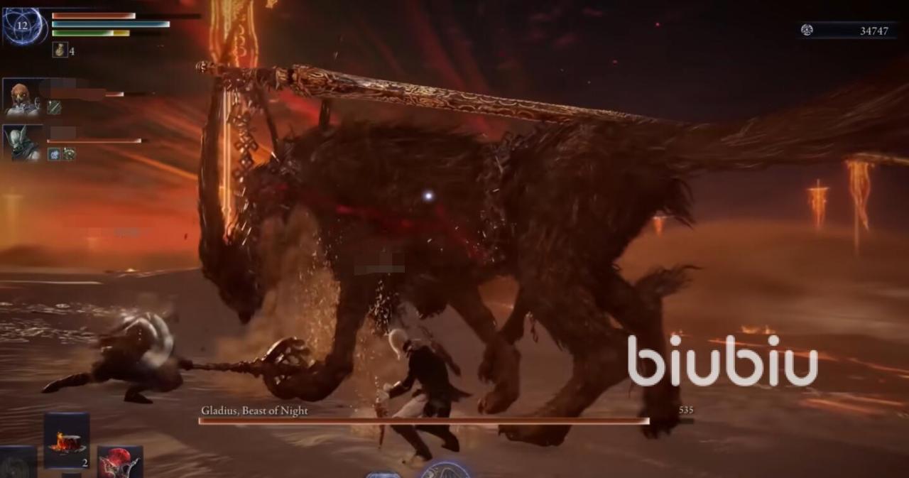 格拉迪乌斯是地狱三头犬的化身,战斗分为三个阶段:一阶段以巨剑挥砍为主,范围较大但前摇明显;二阶段分裂成三只火焰犬,需快速识别真身;三阶段释放全屏火焰喷射,需利用场景掩体躲避。其弱点是强光类技能,圣属性武器可造成额外伤害。