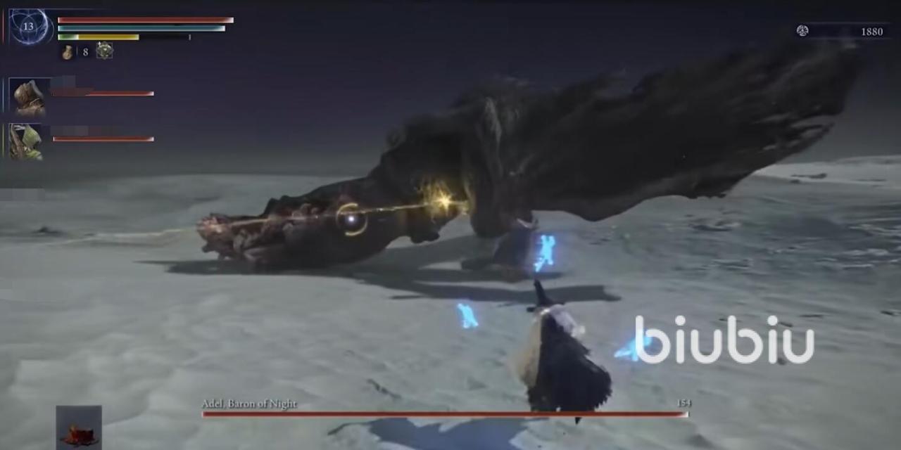 暗影骑士阿德尔(巨口之鳄),擅长高速突袭与暗影领域覆盖,攻击附带暗影伤害。战斗时需注意其无预警冲刺,听音辨位是关键。推荐使用“星光碎片”抵消黑雾视野限制,中距离引诱其使用大范围斩击后反击。