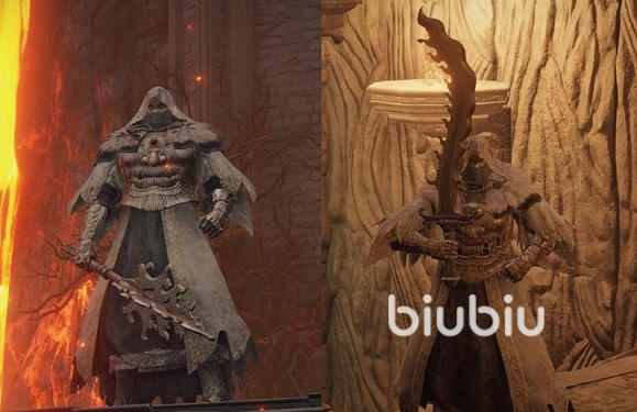 这里也会分成两个,一个就是火纹锤,是一个手里拿着短锤的习武修士。一般都会释放火焰祷告,例如火焰燃火,还有横扫火焰等等。大部分的情况下节奏都会飘忽不定,在受到攻击之后就会出现僵直的现象,马上就会进入霸体的状态,确实会比较烦人。大技能还会用火焰直接包裹着锤子,一旦往地面上砸击就会形成一个爆炸的攻击,不过接下来就不会继续的追击。