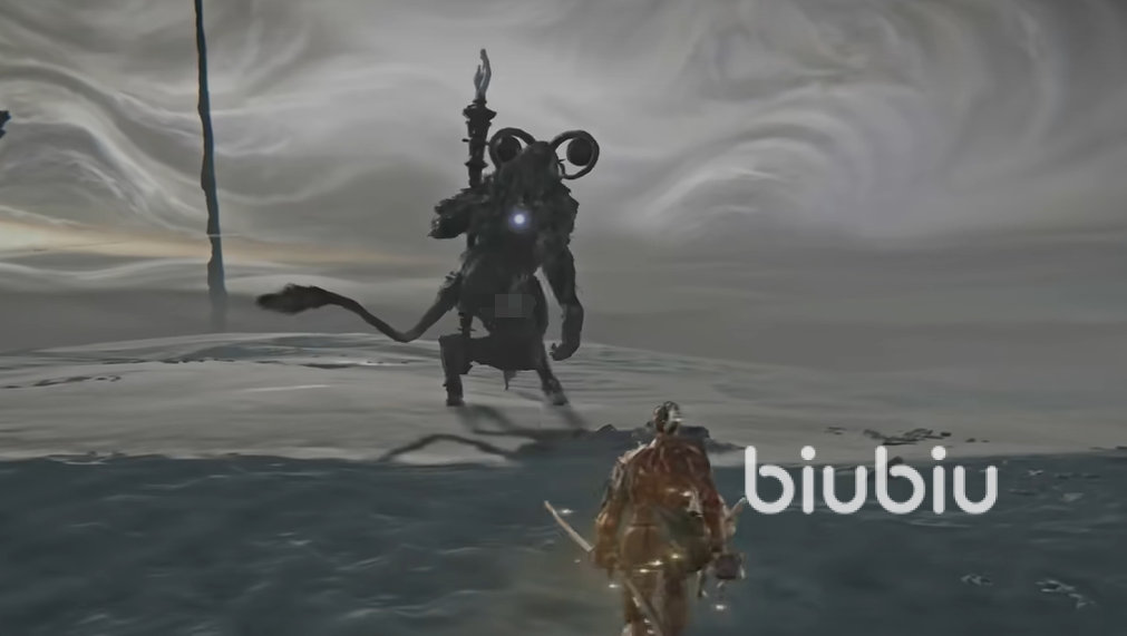 我们在缩圈到最终区域之后,需要推门进入黄金树的领域去挑战最终boss,而利布拉是其中最特殊的一个,我们快速奔跑到沙地当中会看到一个穿着黑衣服的NPC,上去先攻击才可以唤醒boss。