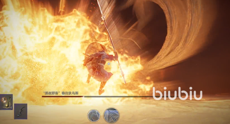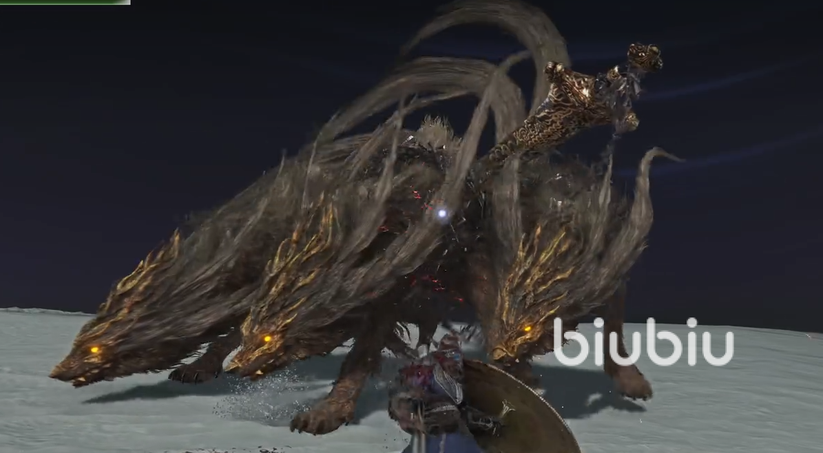 三头野兽格拉狄乌斯是游戏中的第一个黑夜王BOSS,战斗分为三个阶段。它的弱点是圣属性伤害,伤害提升40%(如“黄金树恩惠祷告”或圣附魔武器);而对火属性有抗性,BOSS可免疫火伤,因此需要避免使用火焰武器或法术。所以使用圣属性武器或出血效果的武器会特别有效。出血效果是次选策略,尤其适合【执行者】职业,可快速削减BOSS血量。