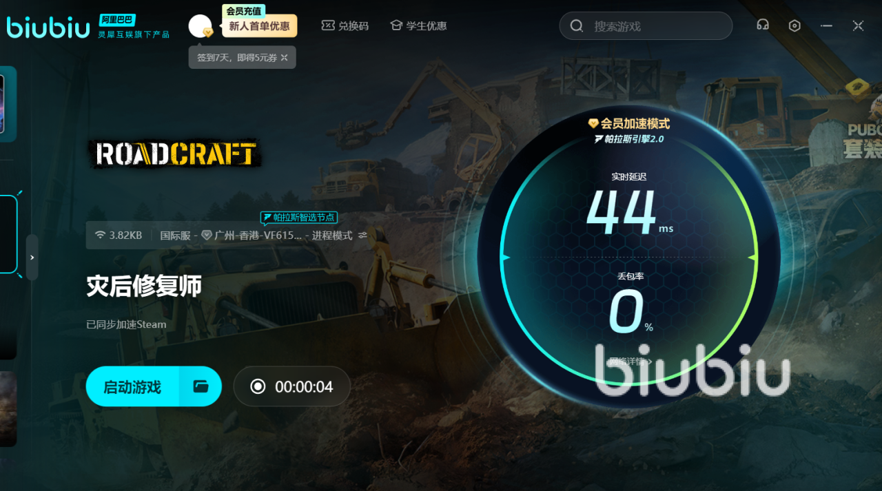 现在,用平台推出的【biubiu不掉线】活动可以领72h时间,第一次注册成功还有24h时长拿,这些核算下来到手96小时免费提速时间。