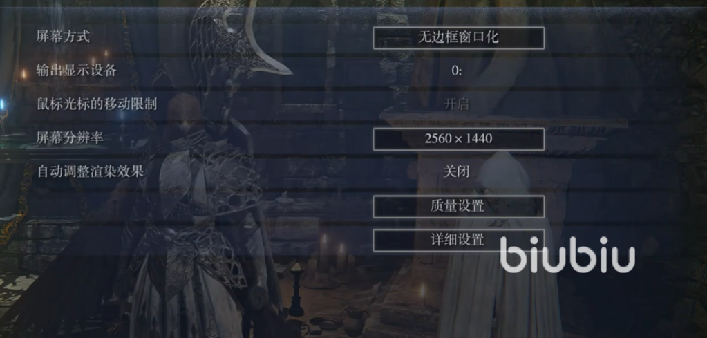 我们需要经过一定的画面调节得到高帧率,首先将屏幕方式改成无边框窗口化,这样能全屏享受画面,并且运算的更加快速。屏幕分辨率就调整到跟自己的显示器一样的规格。