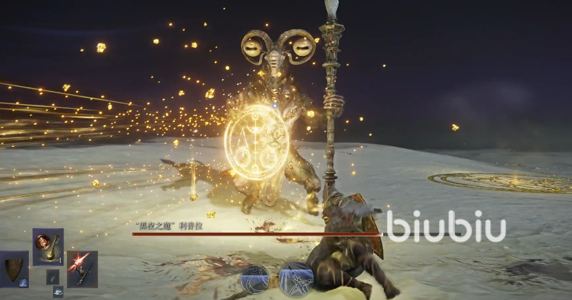 “黑夜之魔”利普拉是《艾尔登法环:黑夜君临》中以癫火与炼金术为核心的诡异BOSS,其山羊头颅与黄金法杖的组合透露出扭曲的仪式感。利普拉只有一个阶段,但有常规攻击和高危技能。下面做出详细的指导: