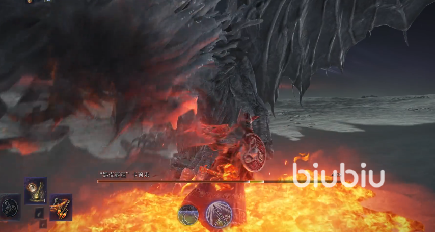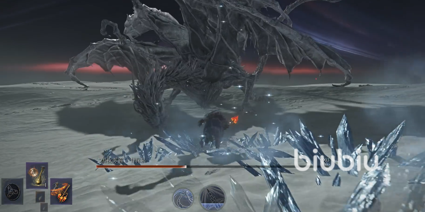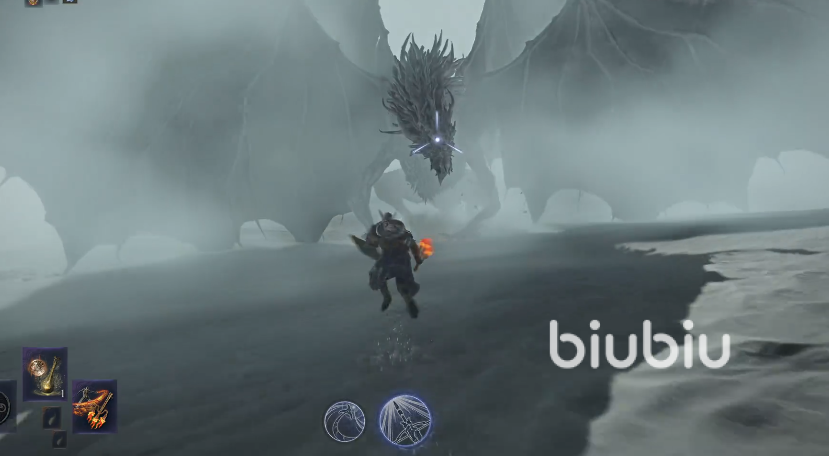 “黑夜雾霾”卡莉果是《艾尔登法环》“黑夜君临”DLC中盘踞于雾中的冰霜巨龙,其存在与史前时代的寒冷雾霾紧密相连。这只巨龙以覆满冰霜的巨翼和泛着幽光的双眸震慑敌人,战斗中会释放致命的冰霜攻击,其核心弱点为火属性与出血异常,而对冻伤属性则具备较强抗性。团队若能提前为武器附加火伤或出血属性,将极大降低战斗难度。