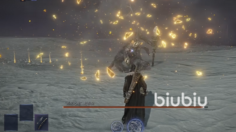 如果及时的清理掉了护盾,那么对方会获得一定时间的防御增益,可以强化自己的常规攻击,这个时候大家要高度警惕,躲避对方的攻击。这一阶段结束之后,利普拉会向下砸法杖,这个时候玩家会容易累积发空值,这个阶段就需要大家不断的去捡地上的金色碎片。