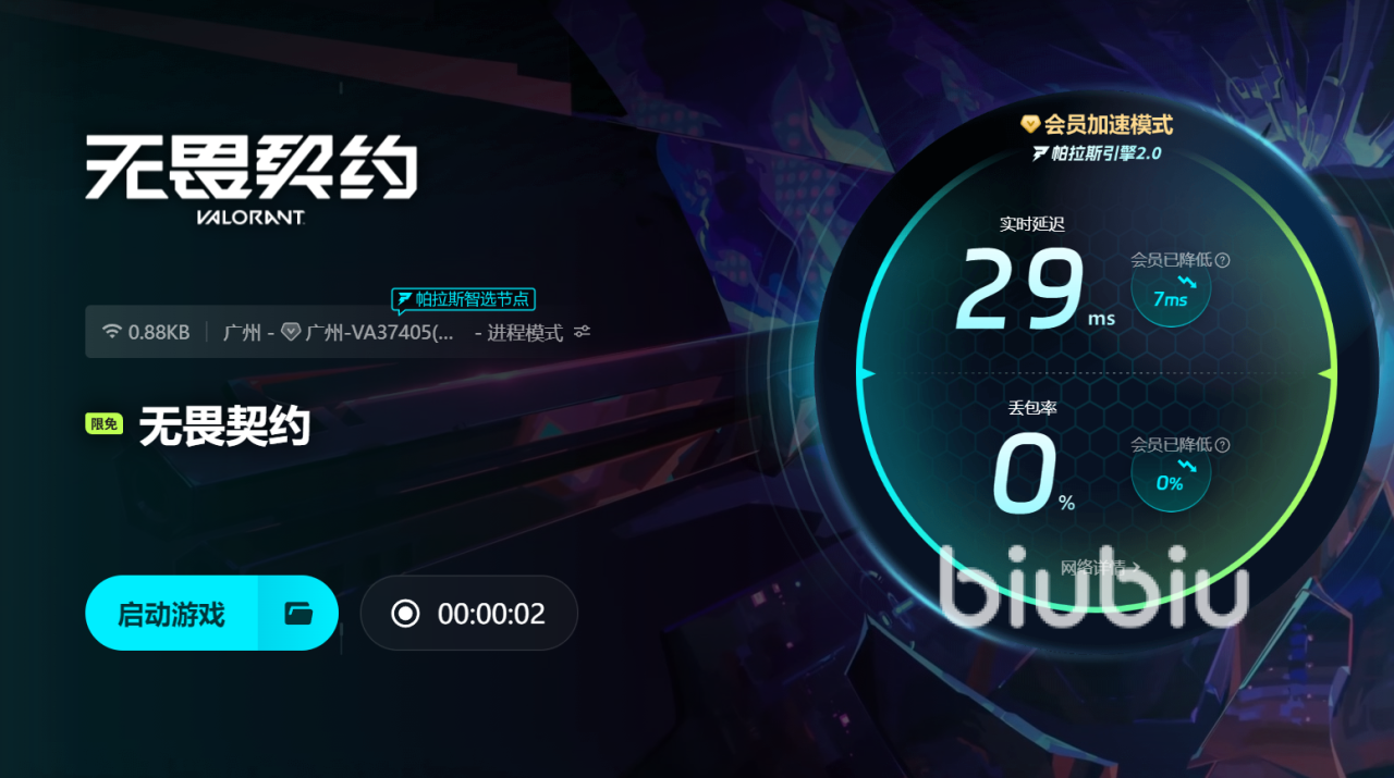 最近biubiu加速器还贴心准备了丰富福利,特别为新用户开放24小时免费加速体验,让你轻松感受极速网络带来的畅快感受。只需在应用内搜索“无畏契约”,即可一键开启专业加速,瞬间提升游戏流畅度。更棒的是,进入兑换页面输入专属兑换码【biubiu不卡顿】,还能额外领取72小时加速时长,助你纵享无延迟的极致游戏体验,让每一次对战都激情四溢,畅快淋漓。