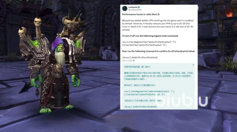 /dump C_AddOnProfiler.IsEnabled() 出现的返回结果如果是“true”那么这个功能就是开启的,想要关闭这个功能,则需要使用第二个宏命令,/runC_CVar.RegisterCVar(“addonProfilerEnabled”,”I”); C_CVar.SetCVar(“addonProfilerEnabled”,”o”)就可以关闭这个监控,第二条宏命令运行后,再用第一条宏命令检查,如果是false则说明这个功能被关闭,就会减少一部分掉帧的可能性。这个是针对11.1版本后的某些掉帧情况的解决。