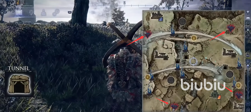 次日起,地图扩展至全境,此时可高效收集教堂增加圣杯瓶。若你手里目前拿的还是白/蓝品质武器,立即前往矿洞(洞穴图标,如下图)获取锻造石:首领必掉2级石,城镇(聚落图标)商人亦出售1-2级石及针对最终BOSS的装备。中央城堡地下室藏有休眠之力(等同首领掉落物),8级以上可挑战地图标记的飞龙获取稀有装备。特殊商人交易会召唤额外首领,虽风险高但击杀回报丰厚。进入最终区域前,利用圈外敌人狙击或引至赐福旁刷卢恩,争取将角色升至9级、武器强化至紫色品质。