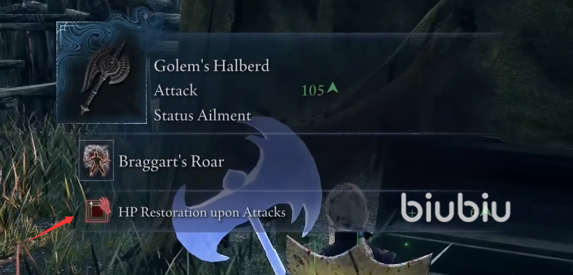 早期的装备极力推荐收集"击杀回血"或"连击减伤"的词条,可大幅节省圣杯瓶资源。还有下面这个护符,可以提供额外卢恩获取,后期助益非常大。遇到了"唤声泥铃"务必保留,其追踪弹幕消耗专注值低且能重复使用。地图中部的沟渠区域分布着银色叶丛,嗅探后暂时提升卢恩获取量。
