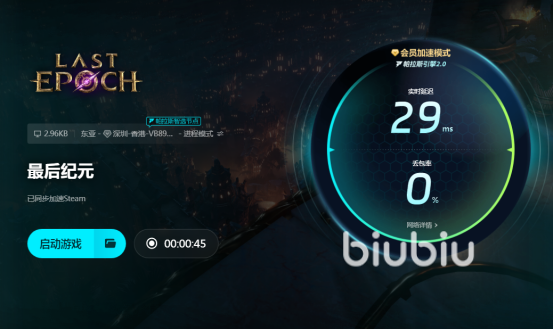 最后纪元卡顿可直接使用biubiu帮忙改善,当小伙伴们体验之后会发现效果相当显著,能够将延迟数据降低至50ms以下,重要的是丢包率为0%,每当识别到有丢包状态都会实时补发数据包。