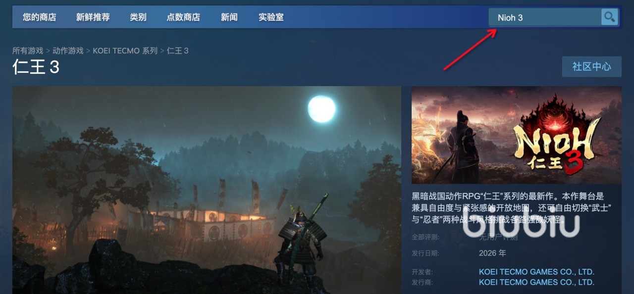 该作在Steam上的正式名称为“Nioh 3”。玩家可以在页面的搜索框中输入这个英文名称,就可以直接找到这款游戏,预计2026年上线。在6月5日的预告片中展示了镰刀划破血色残阳的震撼场景,标志着玩家期待已久的“落命”之旅迎来全新篇章。