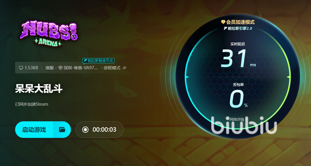2025年06月09日 16:05 来源:专注为佐助作为主打荒诞风格多人乱斗游戏,其中玩法机制还是很丰富的,并且整体的趣味性效果上也很是不错,得到了许多玩家认可,本期小编主要是来与大家介绍呆呆大乱斗黑屏闪退卡顿延迟丢包,若是朋友们到时有遇到类似情况,希望能有软件来帮自己解决的话,那么biubiu的使用就很不错,各位近期对于此有想法,不如就一起来接着往下看看吧。