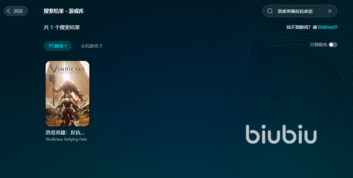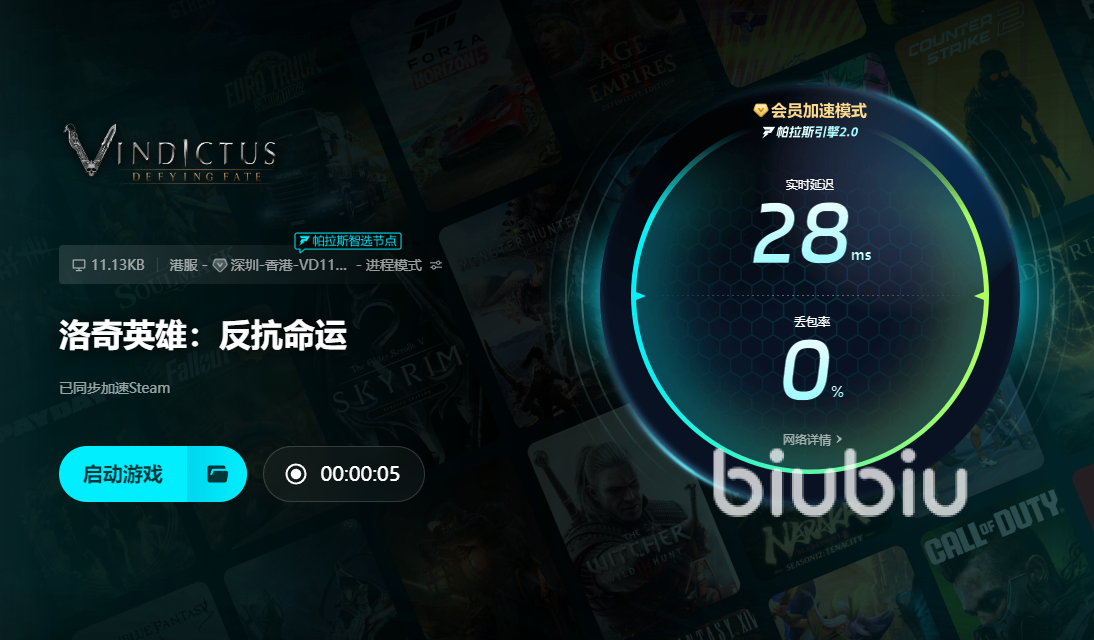biubiu的游戏库庞大,主机以及pc端都有,并且游戏种类涵盖国内外热门游戏,现在大家进行搜索就能看到本游戏的加速专页,点击一下立马使用,获得加速提升。