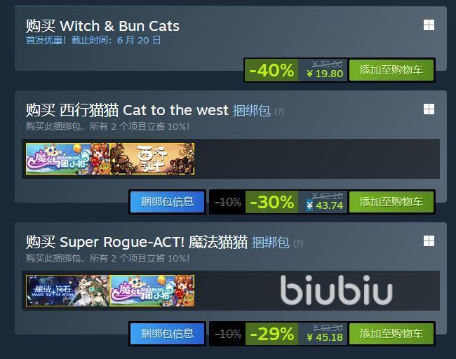 魔女与团子猫会在steam平台发售,售价33元人民币,首周能优惠40%,特惠19.8元,另外有两个捆绑包,是捆绑厂商旗下的游戏发售的,分别为43.74元和45.18元。游戏里会设定一个比较立体的卡通场景,玩家可以扮演魔女角色,不断在游戏里和恶魔战斗,为的是能击败这些恶魔,帮助小猫夺回珍贵的食物,看似只是一个设定比较普通的游戏,但里面融合了肉鸽设定,每一次挑战的场景都是随机的。