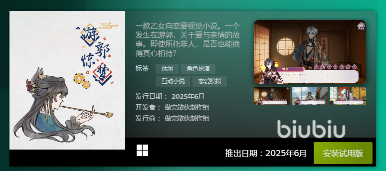 游郭惊梦:画风唯美的视觉向恋爱游戏,我们将来到游郭开启爱情跟亲情的奇幻之旅,每个选择都会导致我们最终的结局不同,一起来探索人心吧。