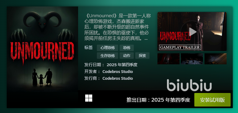 Unmourned:优秀的心理恐怖类游戏,还是第一人称视角,场景选择了最温馨的家。主角在搬入新家之后遭遇了超自然事件,查找线索找到前房主失踪之谜才能顺带拯救自己。