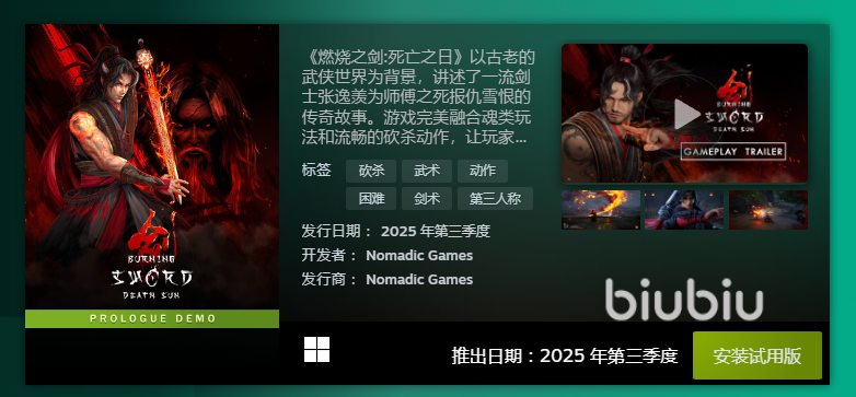 燃烧之剑:死亡之日:一款武侠风格的第三人称动作游戏,我们成为一流剑士,走上为师傅报仇的道路。玩法融合了类魂元素,boss难度有高有低,需要用流畅的砍杀动作,才能成功击败他们。