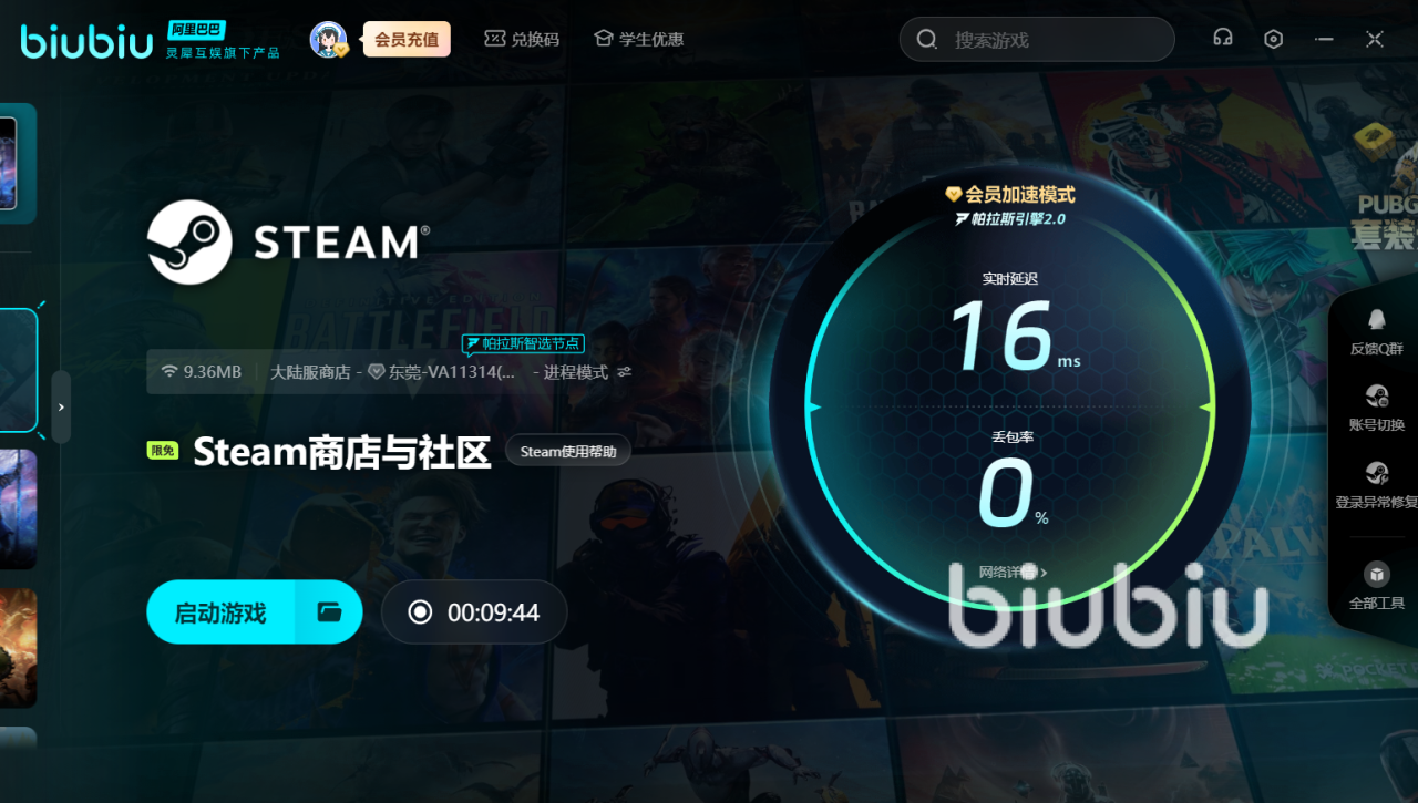 加速过程中,页面实时显示延迟、丢包率等数据,当你在游戏中遭遇暴风雪场景或大型cg等网络压力较大的环节时,可直观看到biubiu如何通过动态多线调度技术,自动避开拥堵节点,确保外星探索全程丝滑。此外,若你在加速中遇到不会用、找不到游戏等问题,可通过biu仔客服快速获取解决方案。