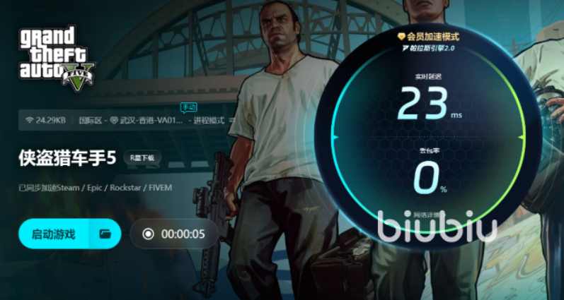 biubiu加速器正是在这种需求背景下诞生的专业网络优化工具,它通过智能路由和高效节点选择,能够显著提升玩家在GTA5等大型联机游戏中的连接质量。它会自动识别你的游戏服务器位置,并选择最近、最优的加速节点建立传输通道,避免不必要的跳转和中转,让游戏数据更加直接、高效地完成传输,从而降低因网络问题引发的掉帧与卡顿。同时,biubiu还具备针对不同游戏场景优化的功能,无论你是单人剧情模式还是在线与好友组队,均能提供稳定流畅的连接保障,有效减少帧率不稳带来的困扰。