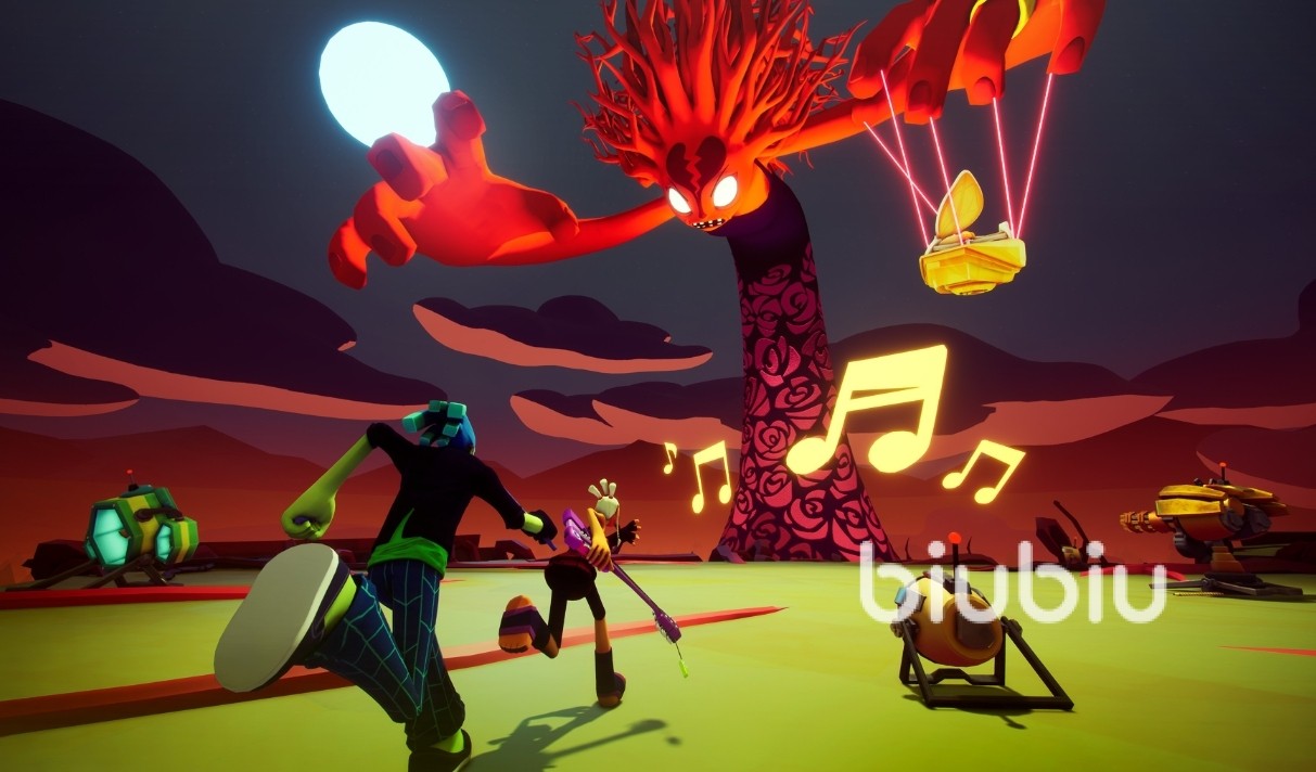游戏中为玩家带来了开放世界冒险以及多元化的场景构造,其中带来了多个受音乐风格启发的舞台,像爵士摩天楼、数码乌托邦、民谣森林等都只是其中之一,整体的视觉表现上很是丰富,除了支持单人体验外,多人联机合作也是可以的,彼此之间的团队需配合方面对于角色技能使用要求较高,合理搭配才能应对高难度挑战,并且操作技巧上也是有着较高的要求。