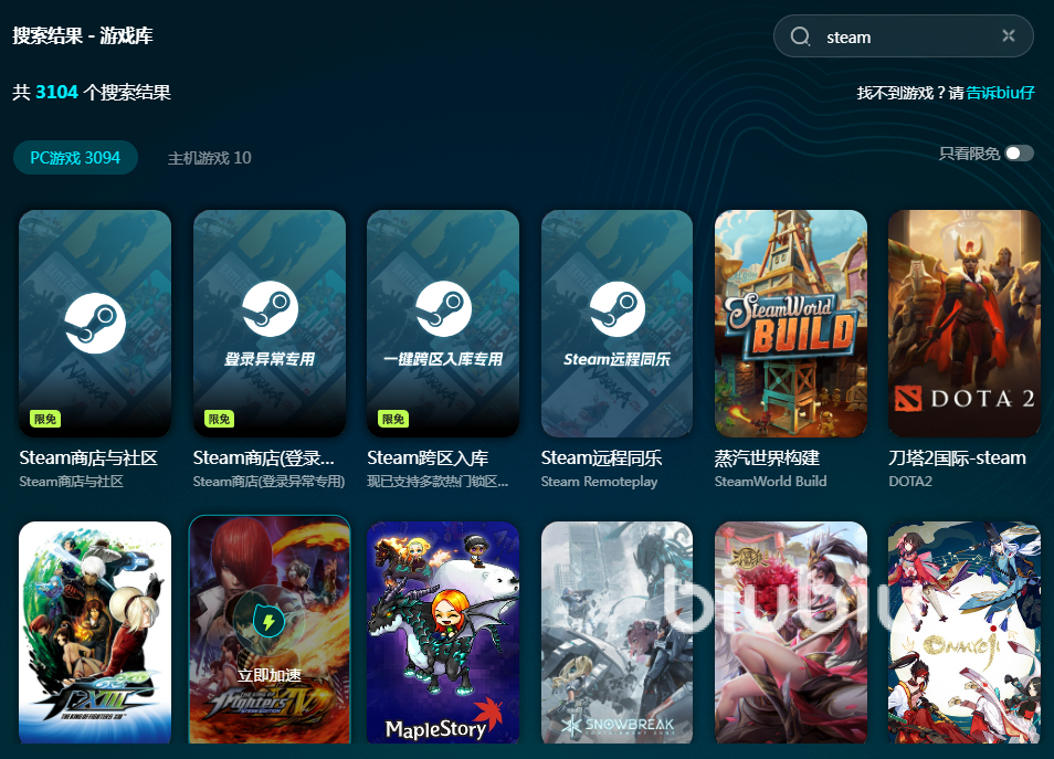 由于拉娜之星2还没正式发售,大家还无法玩它,可以先安装好biubiu,等到游戏上线以后再用biubiu来加速下载游戏。它能大幅度提升游戏下载速度,在片刻之间就帮用户把游戏下载完成。现在大家可以先用biubiu来加速玩其他游戏,比如它可以加速steam平台,解决steam登录异常和商店白屏等问题,功能十分强大。