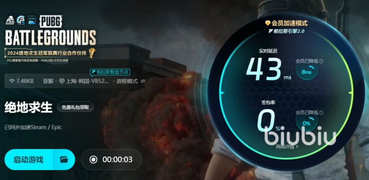相比一些传统加速器对系统资源占用高、后台常驻影响电脑运行效率的问题,biubiu加速器在客户端设计上做了较多优化。轻量化的安装体积和清晰简洁的操作界面让玩家能够快速上手,不需要复杂的网络设置就可以启动加速。在启动PUBG之前,只需一键选择对应区服,即可启动加速过程,整个流程流畅无广告、无跳转,让用户从“技术门槛”中解放出来。对于不太熟悉网络配置的新手玩家来说,这样的操作方式无疑大大降低了使用难度。