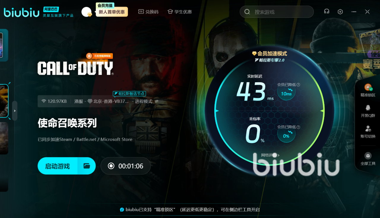 使命召唤黑色行动7作为强联网对战型游戏,网络表现优先级极高,ISP线路拥堵、玩家本地路由策略不合理、国际网络跳数过多等情况易造成延迟、数据丢失,引发游戏中顿卡甚至角色瞬移。物理距离带来的延迟难以消除,但专用加速工具可智能优选传输路径,其中biubiu加速器专攻游戏网络优化,依托智能节点分配系统与高速专线直连技术,为不同地域玩家自动筛选最优服务器节点接入,极大缩短网络路径、压降延迟、稳定连接。