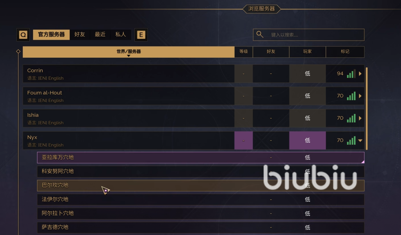 选定世界后,需进一步选择该世界下的具体“要塞”,也就是小服务器。进入后,要塞又包含多种功能区域: