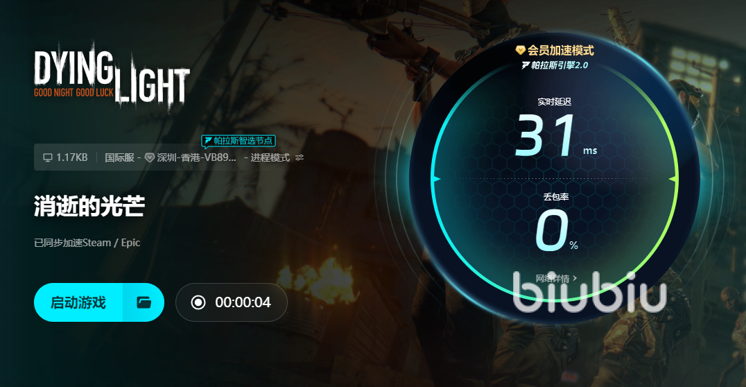 biubiu加速器作为专为游戏加速而设计的工具,恰好在这方面具备明显优势。它通过智能节点调度、动态线路优化等方式,有效缩短玩家与海外服务器之间的数据传输路径,减少因节点拥堵或网络波动导致的掉线和卡顿情况。特别是针对《消逝的光芒》这类对实时性要求极高的动作生存类游戏,biubiu能够提供专线支持,让玩家无论是在房间匹配、战斗互动,还是任务同步中,都能体验到更加连贯和顺畅的网络状态。与传统网络不同的是,它的优化是针对游戏进程进行深度定向处理,能从源头避免掉线风险。