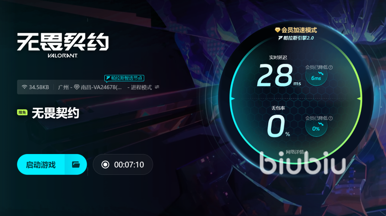 2025年06月13日 17:55 来源:游侠风秋道丁座无畏契约卡死怎么解决?在节奏紧凑的枪战世界里,卡顿就像敌人从背后开的一枪,让人措手不及。想彻底解决这种痛苦,biubiu加速器是你的最佳选择。它通过智能加速系统为你稳定网络连接,有效降低延迟与卡死几率,让每一发子弹都精准命中。无论你是擅长控场的高手,还是精通爆破的先锋,biubiu都能让你的操作流畅如丝,战术执行毫不延误。告别网络困扰,让biubiu为你的每一场无畏对局保驾护航。