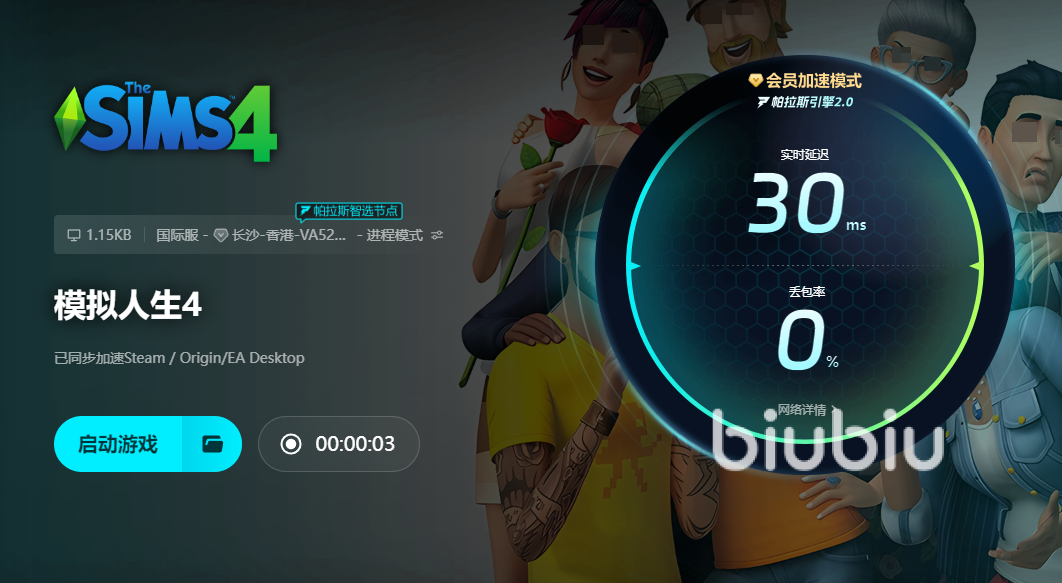 而解决的方法可以使用biubiu 加速器,这是一款用于高科技智能加速系统的游戏加速器,biubiu会在网络之外为游戏独立建立一个快速、稳定和持久的游戏运行网络环境,在这个私密的环境里面玩家完全不必要担心游戏会出现网络问题,这里不仅仅包括黑屏,还有闪退、延迟、掉帧、卡顿等问题,能让玩家享受高速的模拟人生4的生活。