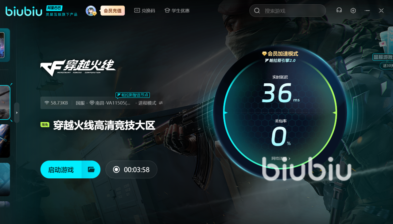 CF以快节奏的团队竞技、烧脑的爆破攻防和刺激的生化追击风靡全球。当你在团队竞技中与队友配合突破时,网络卡顿会直接打乱战术节奏,原本该补位的枪线因延迟变成送人头,掉线还会因挂机受到惩罚。更别提国际服玩家,连接海外服务器时频繁出现的丢包、跳ping。推荐大家用biubiu加速器,它针对CF全模式优化,智能调度高速线路,避开网络拥堵,游玩极低延迟。