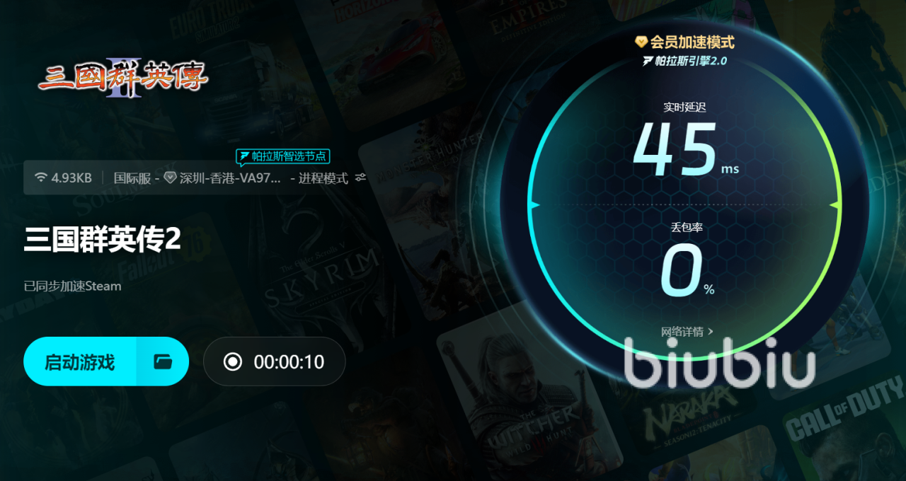 三国群英传2的策略性还是比较强的,基本上全期都是需要跟各种势力进行作战的,只有不断战胜对面的阵营才可以开阔自己的领地,而且还需要巩固自己的阵营发展,这样才能确保整个城池的发展,但是有些玩家游玩的过程中会发现老是卡顿,导致游玩的体验非常糟糕,而且高战斗力的单位还要重新打,那么就可以使用biubiu加速器进行加速,这样可以有效解决很多的卡顿以及掉线问题,同时新人在注册后便获24小时免费加速,以及新老用户使用兑换码【biubiu不卡顿】可获3天免费的使用权哦!