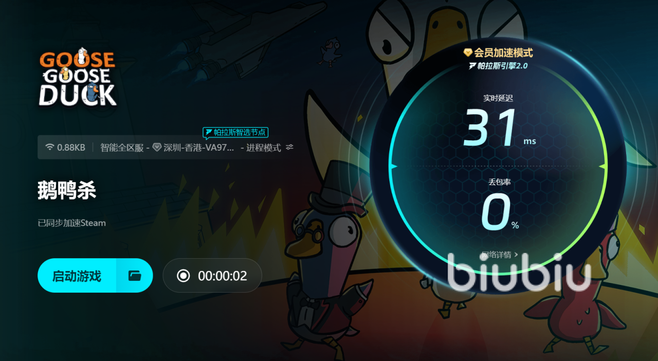 2025年06月16日 16:03 来源:瑞香旦毒刺水母在玩鹅鸭杀时,遇到一直转圈进不去的情况,很多玩家都感到非常沮丧。这种网络卡顿不仅影响游戏体验,还可能错失关键时刻的推理和团队配合。那么遇到鹅鸭杀一直转圈进不去怎么办?这时推荐使用biubiu加速器,它能智能选择最快线路,稳定连接服务器,有效解决延迟和丢包问题。借助biubiu加速器,你可以畅快加入游戏,享受紧张刺激的推理对决,无需再为网络烦恼,尽情发挥你的智慧与策略。