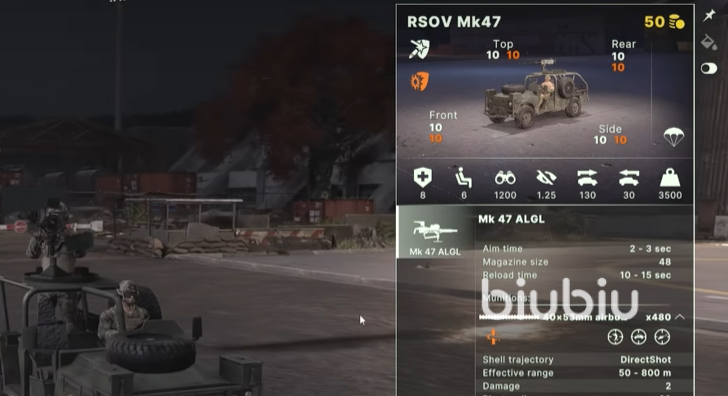 RSOV车辆行动速度很快,达到130km/小时,配备M2重机枪以及MK47榴弹发射器之后支援快,火力强。