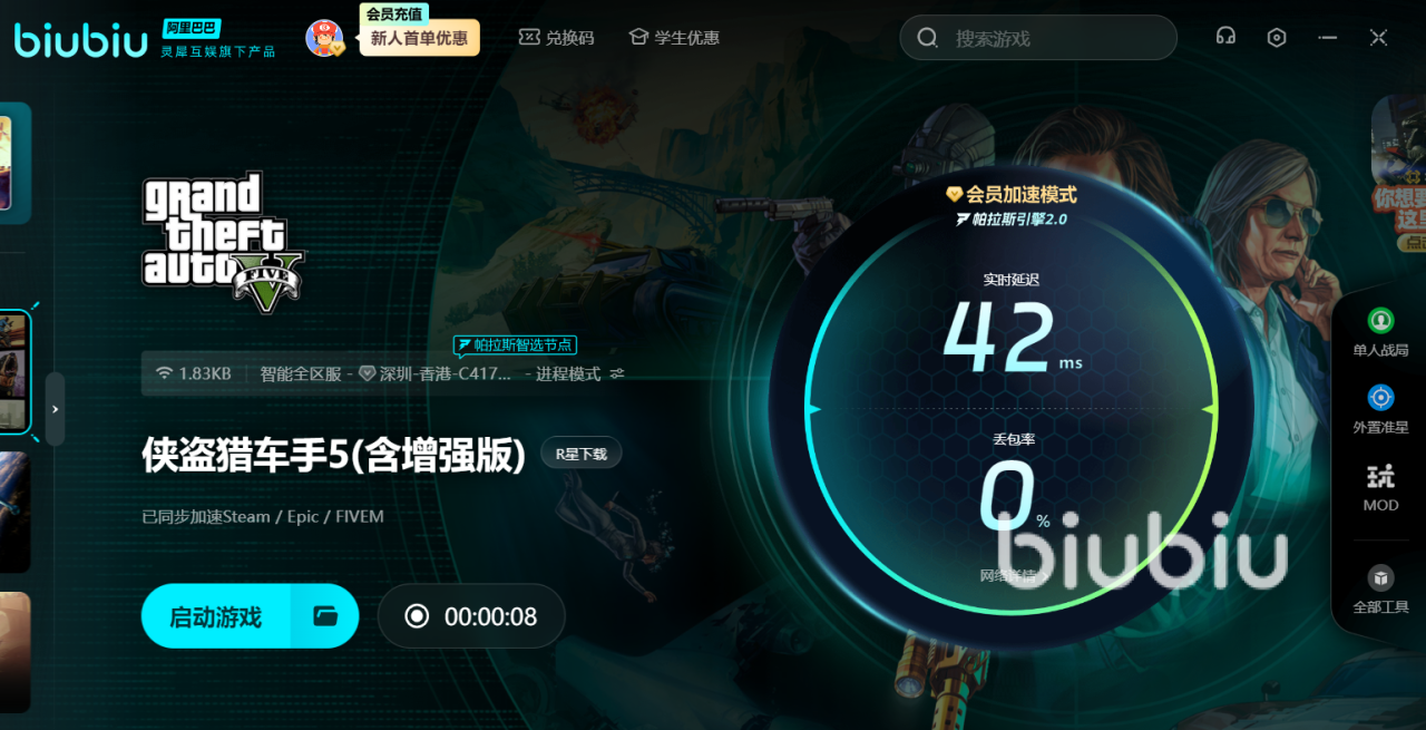 当然了,如果遇到了在线模式延迟问题可通过加速工具缓解。推荐使用biubiu加速器,直接搜索就能一键找到这款游戏了,点击加速后延迟直接从100+降低到50ms内。