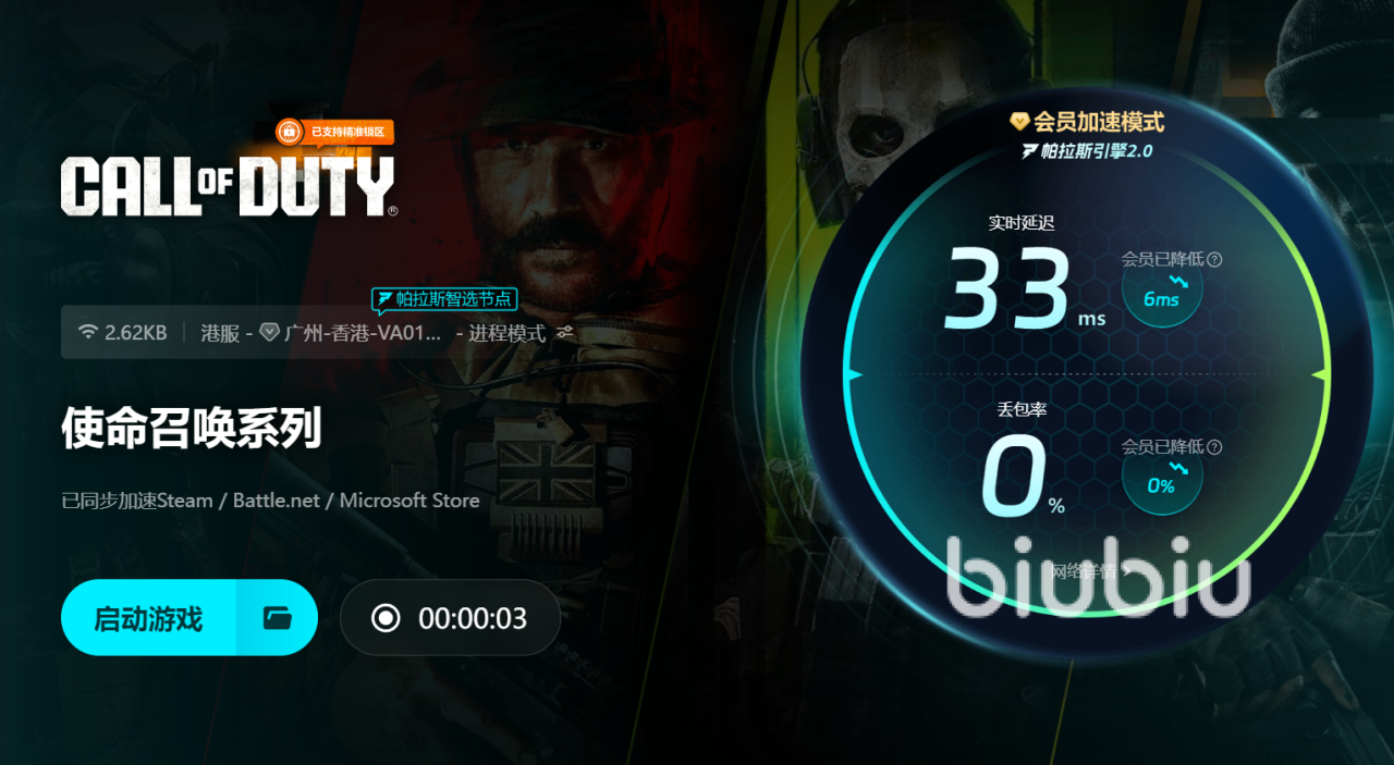 使命召唤作为一款广受欢迎的射击游戏,对网络环境的要求极高,稍有延迟或卡顿便可能影响游戏体验。biubiu加速器凭借先进的加速技术,能够智能优化网络路径,显著降低延迟和丢包率,让玩家在激烈战斗中保持流畅操作。想要体验无阻碍的枪战快感,就赶快下载安装biubiu,让你的使命召唤之旅更加顺畅精彩,畅享极致游戏乐趣。