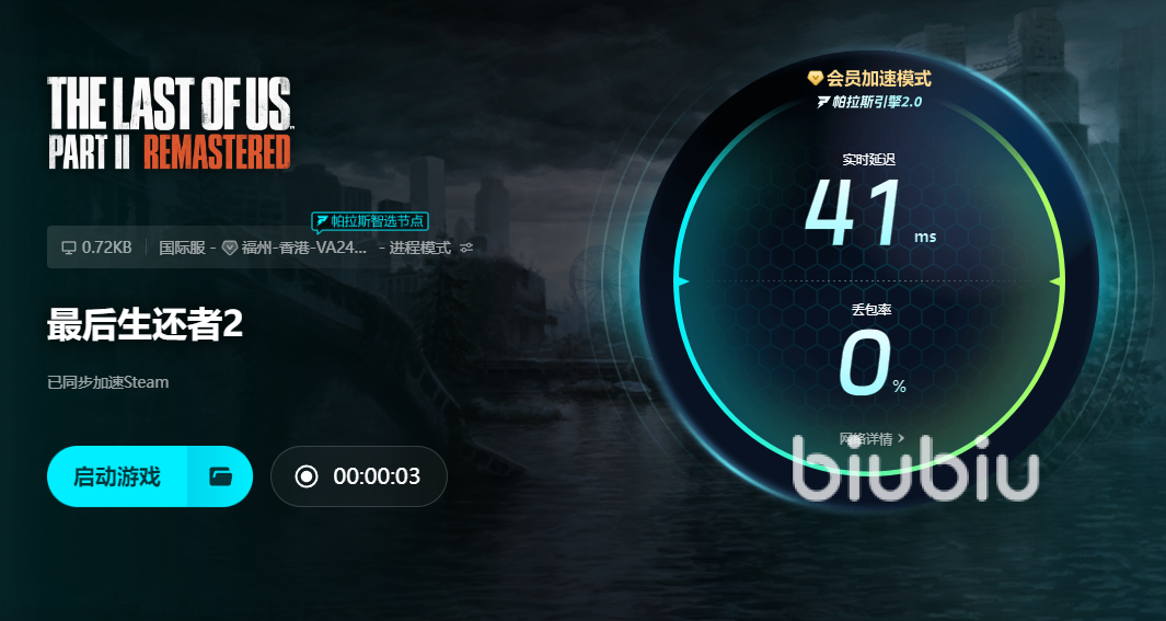 它的开放世界场景方面表现也是很逼真的,更是带来了多种剧情以及对话等元素,让小伙伴们到时能得到一个不错的体验效果,其中的逼真末日场景,让玩家的沉浸式感受变得更强,不过在运行期间,对于小伙伴们自身的网络方面稳定性也是有着较高的要求,所以此时去选择合适工具来帮自己优化就非常重要了,像biubiu便是不错的选择,强大的专线加速能力,能让用户长时间体验也不用担心会有掉帧等问题。