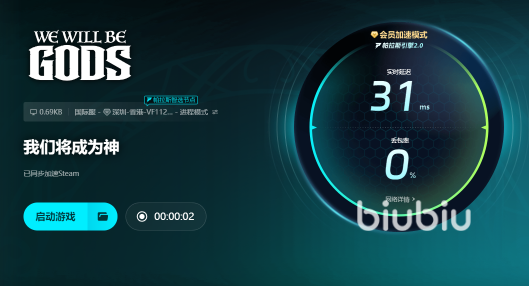 规避We Will Be Gods 游戏出现延迟等情况,大家提前安装好加速工具。biubiu加速步骤简单。首先,前往官方网站下载软件,将其安装在非系统盘之外的存储空间。第二,注册个人账号。玩家填写账户名称和密码等资料,通过实名认证信息。第三,开启加速。在游戏库搜索对应名称,大家在biubiu找到对应的游戏,选择区服,比如港服、日韩服等,设定一键立即加速。