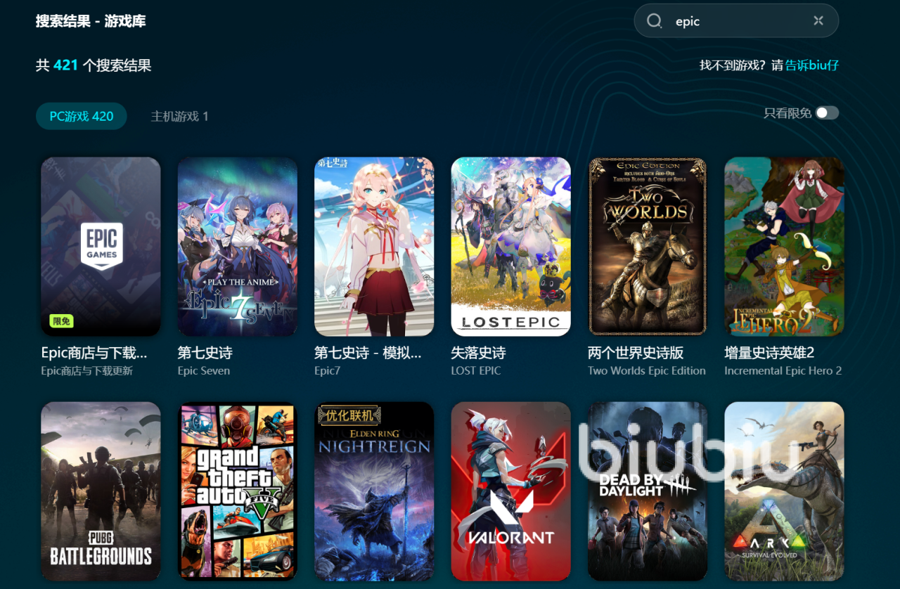 如今在游戏圈中,EPIC作为知名大型综合游戏平台,以其丰富的游戏资源和多样化的优惠活动吸引了众多玩家的关注和加入,汇集了许多备受喜爱的热门大作。然而,由于EPIC服务器多设在海外,网络传输距离较远,玩家在使用过程中经常会遇到网络延迟、连接中断甚至游戏闪退等问题,严重影响了游戏体验。针对这一难题,biubiu加速器应运而生,凭借先进的技术手段有效优化网络连接,减少数据丢包和延迟,让玩家远离裸连带来的卡顿和掉线困扰,畅享更加稳定流畅的游戏过程。
