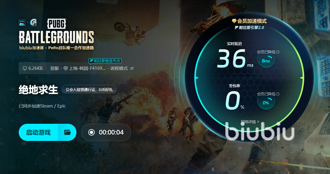 它的地图战场设定都是很宏大的,并且有着毒圈机制,随着时间推移,会迫使玩家不断缩小活动的范围,那么这个时候战斗也会来的更加快速,而网络方面环境不够给力,或者经常发生掉帧以及卡死等问题就很难受了,所以还需打开biubiu这类软件来帮自身进行优化就很重要,现在新用户首次登录更是能顺利领取到到24H的加速机会,让玩家到时长时间体验,也不用顾虑会遇到有卡死等问题的影响,新用户的提前使用可不是随便什么平台都能给到哦。