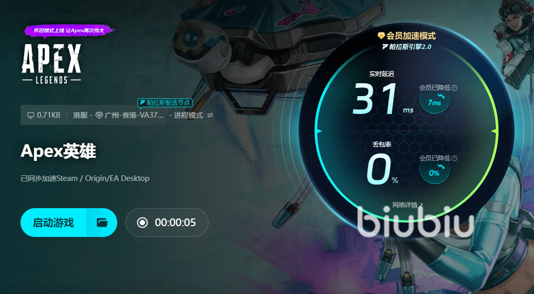 以上就是小编整理的为什么要用APEX加速器的内容,并为大家提供了一份选购指南,相信看完小编这这份内容,关于“APEX加速器哪个好”这个问题,应该也有了自己的答案。最后,小编想提醒一下各位玩家,如果要获得biubiu加速器的加速加持,需要先启动加速器后,在加速器上打开游戏后才能真正获得加速效果。