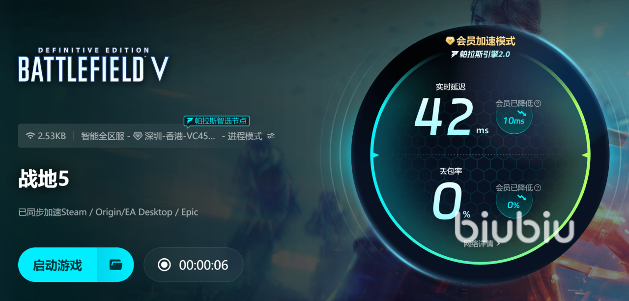 在众多加速工具中,biubiu加速器表现尤为出色,成为不少《战地5》玩家的首选。biubiu针对主流PC端平台优化进行了深入定制,尤其对于连接Origin平台服务器的稳定性有着显著提升。在面对复杂的网络环境时,它能够通过智能路径规划和多节点动态切换技术,确保玩家始终处于最优连接状态,有效缓解因地理距离过远、晚高峰网络拥堵等原因引发的延迟问题。特别是在《战地5》这种大型对战类游戏中,任何一次操作延迟都可能造成严重后果,因此,网络加速器是否专业和可靠,直接影响着玩家的胜负走向。