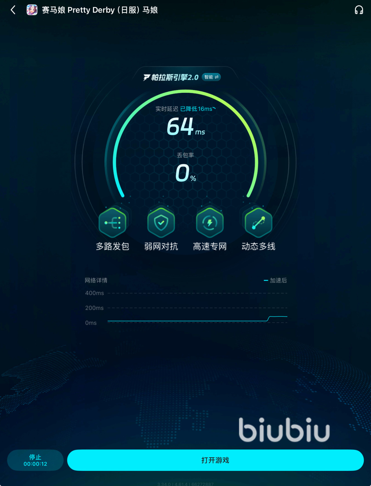 游戏将现实名马拟人化为特雷森学园的少女们,她们既继承赛马灵魂驰骋赛道,又会在获胜后带来偶像歌舞表演,这种“赛马+偶像”的独特设定圈粉无数。但国际服服务器不在国内,本地网络连接易受波动,而biubiu加速器的智能帕拉斯引擎2.0可又稳又快地连入服务器,智能优化节点并自动切换最佳路径,实测将日服、台服等国际服的延迟控制稳定低数值。