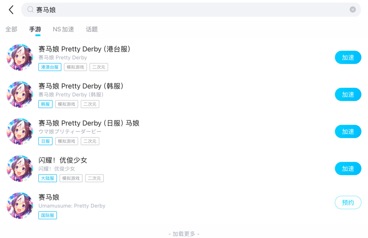 好消息是biubiu手游端无需付费,观看简短的小视频即可兑换加速时长,零成本畅享稳定网络;它适配手机、平板等多设备,大部分机型都能获得加速支持。打开软件搜索“赛马娘”,即可找到大陆服、台服、日服、韩服等全版本,一键点击就能启动加速,操作简单便捷。