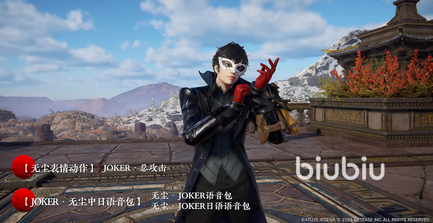 语音包:四角色均推出中日双语语音包(含原作声优录制),单独购买。上新价400元宝(原价1000元包),包含角色标志台词如JOKER的“偏铝酸钠”。